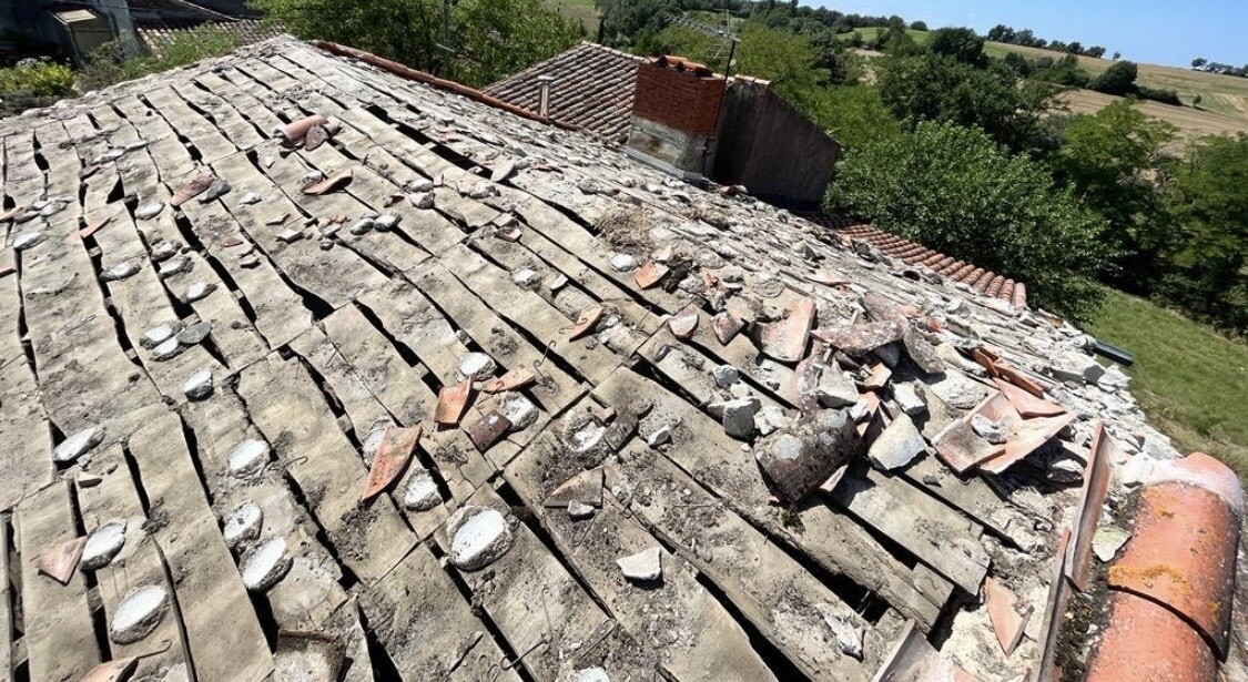 Reprise d’un faîtage à sec, puis application, peinture, traitement d'étanchéité et hydrofuge